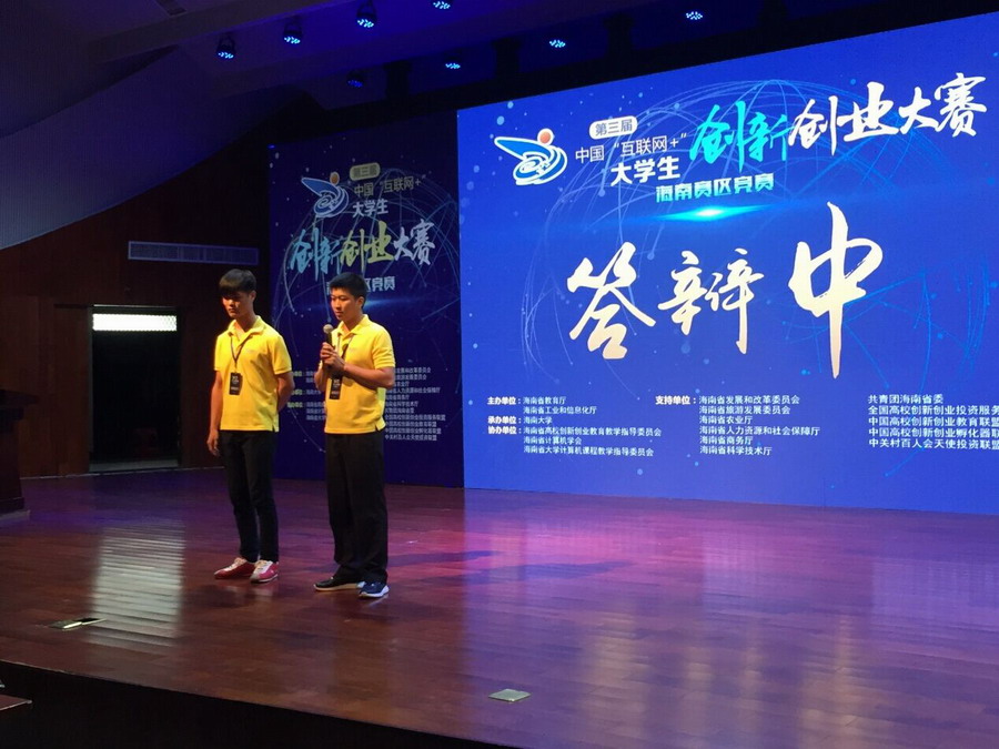 7月7日上午,由海南省教育厅、海南省工业和信息化厅共同主办,以“搏击‘互联网+’新时代壮大创新创业生力军”为主题的第三届全国“互联网+”老员工创新创业大赛海南赛区竞赛闭幕式暨颁奖典礼在海南大学思源学堂举行。由公司黎恒茂老师指导,王萍、史学伟、陈德常、张鹏帅、黎子豪、毛婉君、张泽颖同学的参赛项目《“+1”微信营销工作室》荣获创意组铜奖,由谢光、郭亮老师指导,陈敏、李雪梅、张璐、杨柏松、高宏同学的参赛项目《三嗨租车》以及《VR发泄》项目荣获创意组优秀奖。这是公司学子继去年在海南赛区获奖后再度摘得该赛事奖牌。